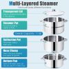 • Ergonomic Loop Handles Safe Transport: Loop handles are perfectly and firmly welded on the three steam pots. Loop forms complies with ergonomic standard and are easily hold and bring you convenience to move it. The lid is made of tempered glass and its edge is protected with stainless steel.