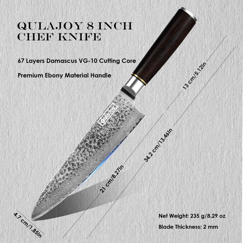 • JAPANESE KNIFE - Qulajoy 7-inch santoku chef knife is the perfect multi-purpose kitchen knife. Ideal for preparing meats, fruits and vegetables and more, and perfect for dicing, slicing and chopping, its performance combined with great looks will make it stand out in any kitchen!