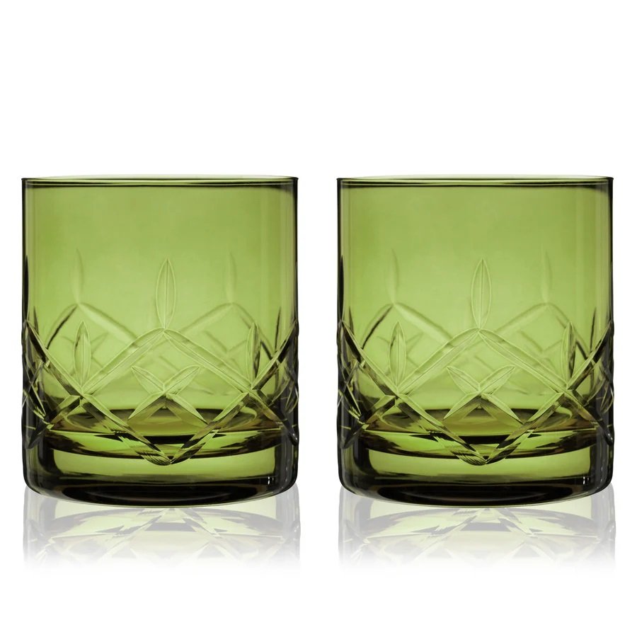 Admiral Cut Crystal Rocks Glasses in Green Viski®