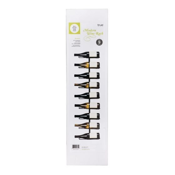 Simple and streamlined, the Alignâ„¢ Wall-Mounted Wine Rack is crafted from black wrought iron to display nine red, white or sparkling wines in perfect vertical alignment on any wall. The modern minimalism of the frame puts maximum emphasis on bottles and labels. Kit includes screws for easy installation.