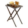 Our Devon Butler Folding Tray Table sets up instantly for extra serving space.  The sturdy and elegant table expand your entertaining options both tableside and chair side.  Tray removes and TV Tray stand folds for easy storage. Serving Tray overall size is 22.13"W x 14.65"D x 2.36"H with inner surface area of 20.94"W x 13.46"D.  TV Table has serving surface area of 20.94"W x 13.46"D and overall TV Table size is 21.97"W x 14.49"D x 27.17"H without serving tray.  It is 14.49"W x 3.98"D x 35.41"H when TV Table is folded.  Use both of them together or separately.  Constructed from combination of solid and composite wood in warm Antique Walnut Finish.  No assembly require. Serving Tray overall size 22.13"W x 14.65"D x 2.36"H with inner surface area of 20.94"W x 13.46"D.Overall TV Table 21.97"W x 14.49"D x 27.17"H.  Folded is 14.49"W x 3.98"D x 35.41"H.Constructed from combination of solid and composite wood in Walnut Finish.  No assembly require, nullnullnull.