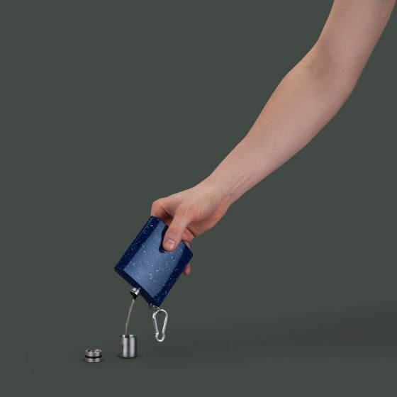 Our campsite-ready carabiner flask, finished in that classic blue and white speckled enamel, hooks effortlessly onto a backpack or belt loop for spirited adventures at the drop of a hat.