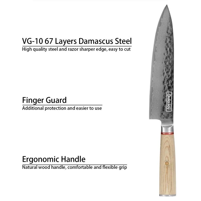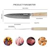• Damascus HC Steel - Vegetable Cleaver uses 67-Layers damascus VG10 high carbon stainless steel material and rockwell hardness reachs HRC 60±2, more sharp and durable, anti-rust and easy clean. Can be used for a long time.