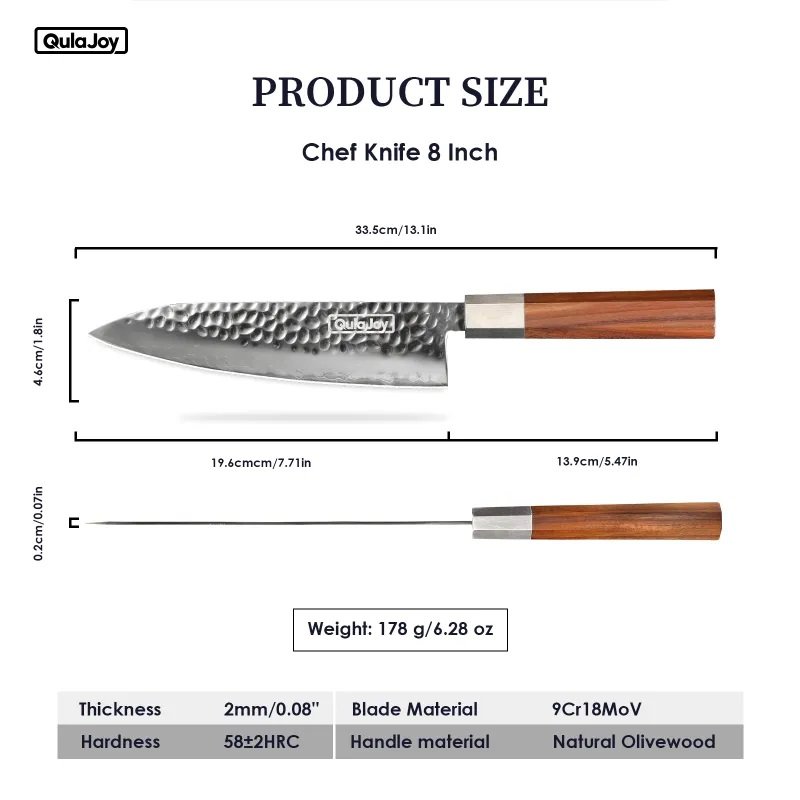 • COMFORTABLE HANDLE】Japanese-style octagonal handle design, made of high-quality olive wood, comfortable to hold, with excellent balance and flexibility. The handle won't break or deform, and the widened finger placement on the handle provides excellent control and grip for long hours of cutting.