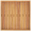 The wooden serving plate is designed with raised edges that prevent the liquid from spilling. It also has sturdy recessed handles for easy movement.Material: Fine sanded teak hard wood with a water-based finishDimensions: 19.7" x 19.7" x 2.8" (L x W x H)Includes recessed handlesRaised edgesUse a dry cloth for wiping/cleaning