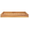 This classic serving tray is made of extremely durable teak hard wood. This piece of teak item is seasoned, kiln-dried and then fine sanded to give a very smooth appearance. Teak wood is known for its exceptional strength and weather resistance and is a perfect choice if you want to purchase a long-lasting piece of wooden tray. The tea platter can also be used as a lightweight and characteristic home accessory to present your most important items on it.